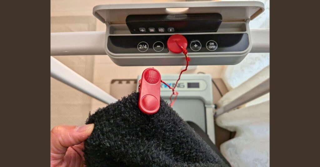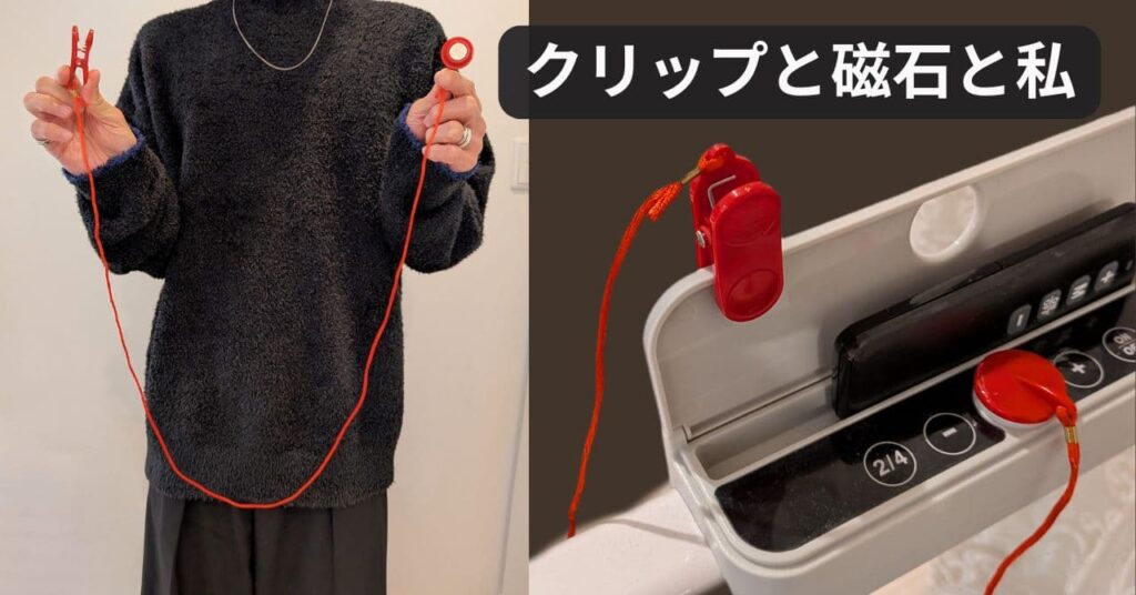 これはただの赤い紐ではなく、先端が磁石とクリップになっているんだ。