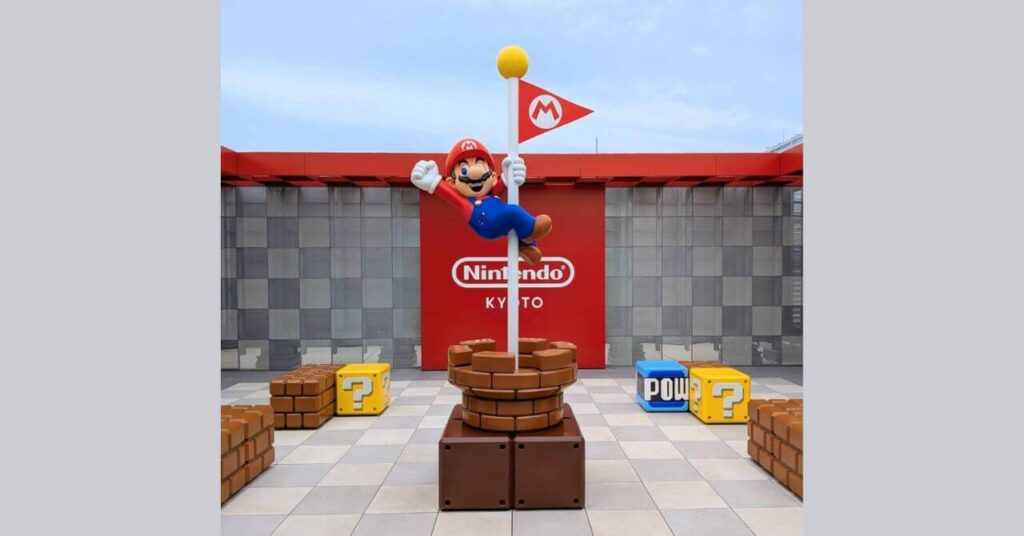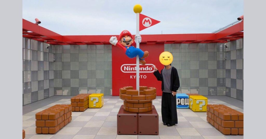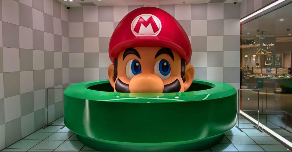 任天堂 京都は、高島屋の 7階にお店を構えていて、1階にはデカいマリオが土管から顔を出している。